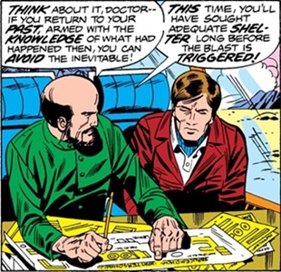 As the two later rode to the location of the Time-Shuttle, Kronus explained the time-travel procedure to Banner. Although Banner was concerned that the plan might fail if something went wrong, Kronus assured him that the obliging nature of time-travel would allow them to try it again... although he cautioned that the stress on the human organism was such that it would be unwise to attempt it a second time.