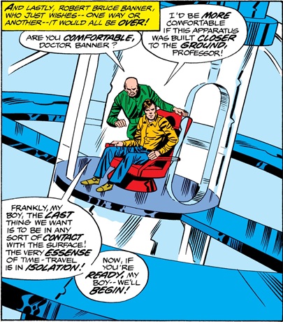 Incredible Hulk II#204, p6, pan3 (Kerwin Kronus explains time-travel procedure to Bruce Banner)