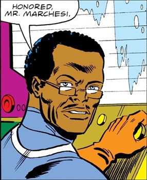 A United States Senate special-projects investigator, Stephen Marchesi was sent to evaluate the progress of the Nest; he was previously married to Karen Lee (Kali) until they divorced. He was present at the Nest during its destruction, but was not resurrected alongside the eight members of the installation. (Comment: Strangely enough, although he was killed in the destruction of the Nest, Marchesi narrated this story's opening flashback sequence.) --Marvel Team-Up Annual#1 (1(fb) |