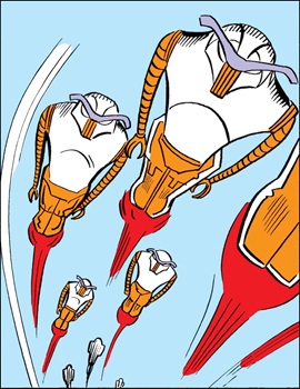 Marvel Team-Up Annual#1, p10, pan3 (one of the Rakks fires eye-beams at passenger jet)
