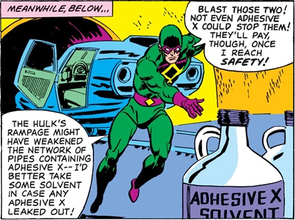 Captain America I#257, p15, pan2 (Master of Matrix Eight tries to get Adhesive X solvent)