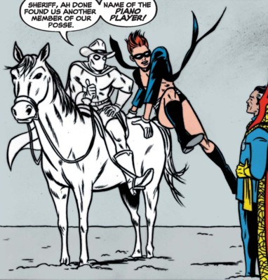 (Avengers I#141 - BTS) <1873> - When Immortus and the Avengers Thor and Moondragon materialized to 1873, the Phantom Rider, Kid Colt, Rawhide Kid, Ringo Kid and Two-Gun Kid confronted them.