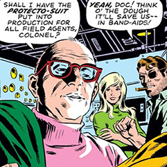 (Captain America I#127) - Faced with the possibility of a traitor in their midst leaking information to A.I.M., S.H.I.E.L.D. embarked upon a complicated plot to expose the traitor. Nick Fury seemed to accuse Captain America, as he had no actual security clearance. Fury had Tony Stark design the robotic Android X-4 on the pretense of testing Captain America to see if he was who he said he was.