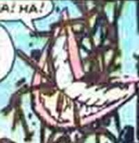 Powers/Abilities: Big Mouth is a large disembodied mouth, perhaps four feet tall and six feet across, with two small vestigial hands; he or she can fly through the air or hover in place, and his or her teeth are strong enough to bite through solid wood. Big Mouth's ability to eat despite an apparent lack of a digestive system suggests that anything that he or she consumed was immediately converted to energy or perhaps projected extradimensionally.