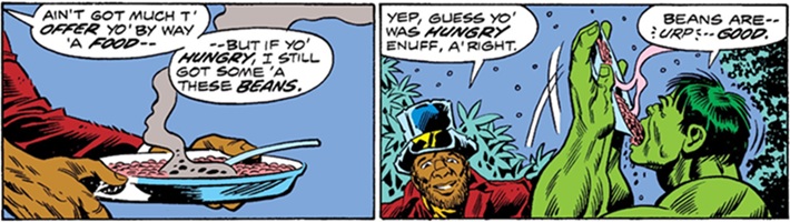 Incredible Hulk II#182, p4, pan7-8 ("Crackajack" Jackson introduces Hulk to beans)