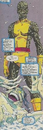 Powers/Abilities: Cyberlock presumably possesses many, if not all of the abilities possessed by his Earth-616 counterpart, Warlock. He is shown as able to change his shape and extend in body in numerous ways. Also, he can scan areas much more clearly than the human eye. Apparently, he also gives off a signal that scrambles recording devices.