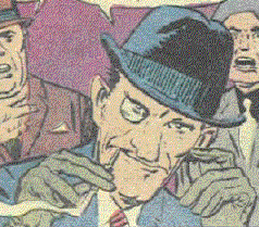 subway tracks in New York City First Appearance: Strange Tales Annual#2/1 (1963) Powers/Abilities: The Fox is an expert thief, and has all the cunning attributed to his animal namesake. He is a renowned criminal strategist, though his reliance on more traditional methods is ill-equipped to deal with modern security measures and superhuman crimefighters. He established numerous bases around New York City, and is highly skilled at improvising escapes and disguises using common objects. Height: 5' 3" History: Almost nothing is known of Reynard Slinker's past, except that he was a renowned thief of jewelry and fine art, and was known to the New York City Police Department. The Human Torch, already jealous of the magazine publicity Spider-Man had recently recieved, was contacted by the police and swiftly set about attacking the web-slinger. After a prolonged skirmish, Spider-Man managed to trap the Torch in specially-modified webbing long enough to exlpain that he'd been framed. The Torch told the police that Spider-Man was the victim of a set-up, and after a few minutes looking throught the files, the detective assigned to the case fingered the Fox as the likely culprit. The Torch wrote a message in the sky telling Spider-Man to meet him at the Statue of Liberty, which both Spidey and the Fox saw. Slinker decided to leave town and lay low. By then, Spider-Man and the Torch had begun systematically searching the Fox's known bases, and Spider-Man happened upon the Fox (disguised as an old woman) in the subway station where one of his bases was located. The Torch soon appeared as well. However, the competitive young heroes got in each other's way while the Fox escaped. Spidey and the Torch followed the criminal's trail through his base, beat some members of his gang in the process, and learning from them that the thief was heading for Central Park. Once the two arrived there, Spider-Man's spider-sense allowed him to penetrate the Fox's new disguise as an astronomer, and he and the Torch, still bickering, hauled the Fox off to the authorities. (Giant-Size Creatures#1; Daredevil I#119-123;