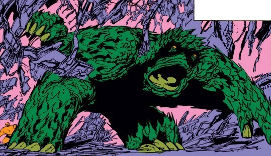 (Fantastic Four I#348) - Giganto was summoned by the Mole Man to capture Skrulls who had landed upon Monster Island, also looking for the Inorganic Technotroid. It also fought the "new" Fantastic Four (Spider-Man, Wolverine, Hulk and Ghost Rider), and attempted to crush the Hulk in its grip, but set him free after being stabbed by Wolverine.