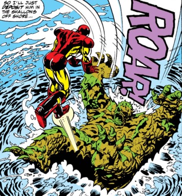 Hulk Annual II#1, p22, pan1 (swatting Hulk and jumping)