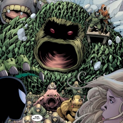 (JLA/Avengers#1) - Giganto was among the monsters of Monster Island who opposed the Justice League of America during their search for the Ultimate Nullifier.