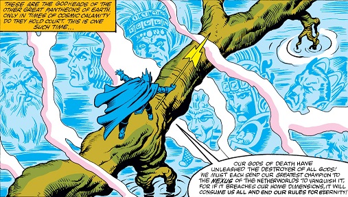Thor Annual I#10, p21, pan2 (Odin petitioning other Godheads)