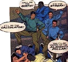 History: (NFL SuperPro#10) - The Happy Campers are four college buddies who joined Camp Runamuk's program to "awaken the inner super-hero" for old time's sake. They were subjected to silly rituals along with the investigative reporters Phil Grayfield (aka the NFL SuperPro) and Ken Reid (his cameraman). They were also subjected to the same experimental ray Grayfield was, which Carragone was using to try and grant superpowers. It didn't work for Grayfield (who was already super-powerful), but it gave Kwong, Walsh, Moody and Pennypacker powers based on characteristics of their personalities and lives. With their newfound powers, they helped the SuperPro defeat Carragone and his sportsmen backers (Hubert Carlyle, Pete Petunia, Edwin Dood and The Surfer). Atop a pile of their defeated enemies, they chose their aliases and their team's name -- much to SuperPro's despair.