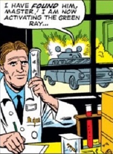But Supramor used transmitters built in the car to eavesdrop on Giant-Man -- he learned that the hero had trained a bee to become a new "steed" for his partner, the Wasp. Wishing to learn everything about bees, Supramor sent Loko in a second station wagon to the home of Fenton Farnum, the world's greatest authority on those insects -- Loko trained the green ray on Farnum and transferred all his knowledge to Supramor.