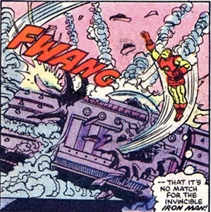 Some time later, the Hijacker wanted to get his revenge on the hospitalized Thing, so he rolled through the street in his second smaller tank, scattering pedestrians and crushing cars along the way; but he was intercepted by Iron Man, who easily destroyed the giant armored vehicle. |