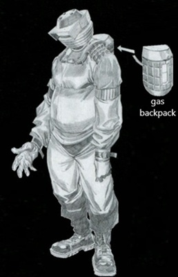Following his resurrection by the Hood, the Hijacker was equipped with a new gas mask, and a backpack containing a variety of gases (knock-out gas, tear gas, etc.).