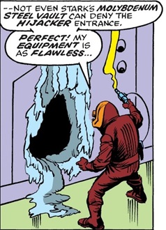 But wearing a gas-mask of his own invention to allow him to resist the gas attack, Ant-Man confronted the Hijacker. Ant-Man then fled from the criminal (I'm not sure why), leading the Hijacker into the cab of the armored truck, where the tiny hero ripped open the Hijacker's mask, exposing him to his own gas--the Hijacker was soon unconscious and unmasked as Howard Mitchell. Ant-Man--ever the super-sleuth--had already identified Mitchell as the Hijacker after seeing the Peruvian statues in his office, and the hero knew that "the indians in Peru have an ancient vapor, the inhaling of which causes a lapse of memory!"...(what the frick...?); after he revived, Michell was subsequently taken into police custody.