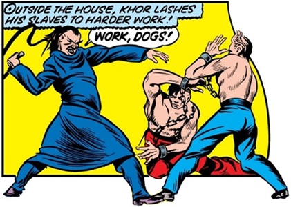 Marvel Mystery Comics I#22/6, p5, pan3 (Khor uses whip to beat slaves from S.S. Olympus)