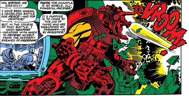 Powers/Abilities: The Pacifier was a powerful humanoid robot, with a laser cannon attached to its "eyes", and another offensive multi-barreled weapon in place of its right hand.