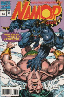 Powers/Abilities: The Sea Leopard is very long lived, and is allegedly centuries old. He is superhumanly strong, and underwater he has considerable speed, at least as fast as Namor. He has sharp claws and a tail he uses as a weapon with which to bludgeon opponents.