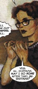 (Amazing Fantasy I#17) - Maxie finally bumped into Spidey, and told him he could name his price for any show, magazine, movie, etc. he wanted. Spidey declined, telling him he needed to live up to his responsibilities. Later, Maxie's secretary, Grace, left him because he hadn't paid her in weeks and she was tired of hiding him from mob leg-breakers trying to collect on his gambling debts. He seemed to have a turn of luck when a different costumed powerhouse, Supercharger, showed up and wanted to work with him.
