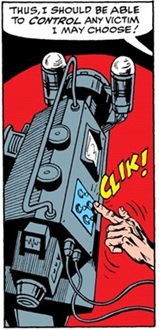 Built by the Sorcerer (Jonathan East), it was a single-unit device that greatly amplified the range of his psychic powers; two cables connected the Psycho-Intensifier to a headband, which the Sorcerer wore upon his forehead. Its maximum range was unrevealed, but from his home in New York City, the Sorcerer was able to transmit his psychic abilities to New Orleans (a flying distance of approximately 1100 miles). The Sorcerer first used it to manipulate Spider-Man (as Peter Parker) into taking a flight to New Orleans; he then transmitted his thoughts to activate the Synthetic Man, which battled Spider-Man. |