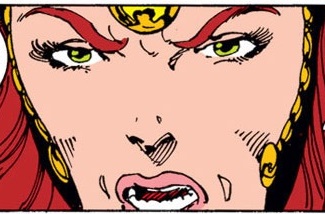 (Fantastic Four I#273 (fb) - BTS) - While Richards lost himself in scientific discovery and repair, Cassandra's thoughts drifted to the power she could achieve with the technology they had. Posing as a loving wife, Cassandra bore Nathaniel a son, but all the while she manipulated his discoveries to set herself as the Warlord. Using the illusion that the Warlord was actually Nathaniel, Cassandra savagely struck down one of the townsites nearby to their fortress. As the Warlord, she declared herself ruler of the entire planet, and had shown in her attack that she had the power to make good this declaration.