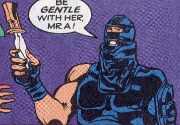 muzzle/gag that blocked her sonic powers.He hated it when Little Pieces talked to his knife, and he had no problem saying that out loud, despite Hadrian's warnings to the contrary. When Mr. Asuza asked to borrow Little Pieces' knife and Little Pieces told him to be gentle with her, Plastique suggested to Hadrian that Little Pieces should marry that blade. Too late, he tried to warn Mr. Asuza against removing the muzzle that suppressed Motormouth's power. . --Motormouth & Killpower#7 Note: As best as I could tell, Plastique did not have explosive powers or even use explosives. He apparently took his name because his temper was explosive. |