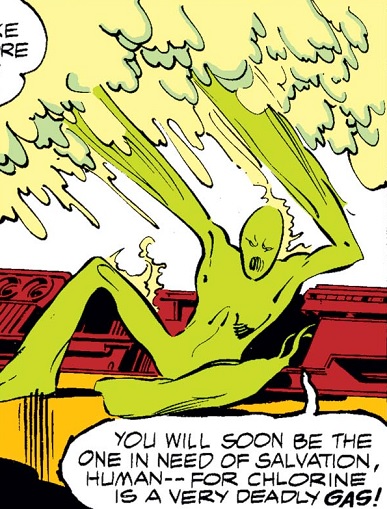 joining other transformed humans as the Elements of Doom, Chlorine