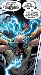 Powers/Abilities: Coma can feed on electrical energy, ranging from pure electricity itself to the electrical energy stored in a humanoid brain. She can sense electrical energy in her vicinity via sense of smell.