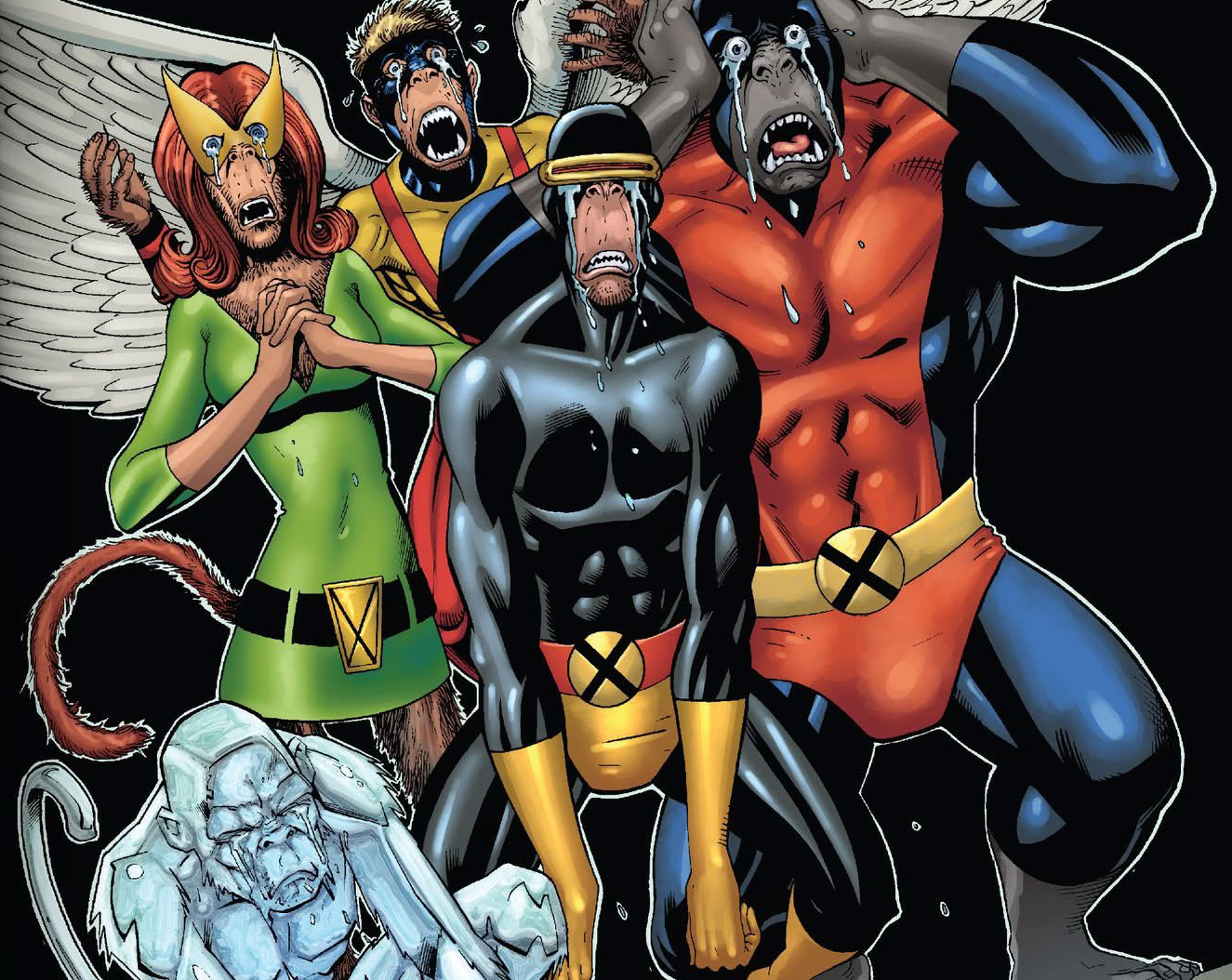 Group Membership: X-Apes (Angel/Warren Worthington III, Beast/Henry McCoy, Colobbus/Piotr Rasputin, Icemonk/Robert Drake, Marvel Girl/Jean Grey, Nightcrawler/Kurt Wagner, Professor X/Charles Xavier, Psylocke/Betsy Braddock, Storm/Ororo Munroe, Wolverine/James Howlett);