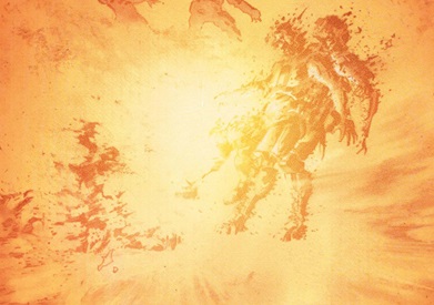 the 24th batch Morgellon spores (see comments). The software and behavior was originally dictated by the Alphamech protocols (however, without the influence of an organic brain, its only goal was to demolish). Within the Deathlok mindscape, the Alphamech appeared as an armored knight (based on Manning's childhood memories of his grandfather teaching him the art of warfare) that continually pursued Manning and Travers, seeking to overpower them and take control. Manning appreciated that if the Alphamech took control, it could and would use Roxxon's orbital weapons armada to demolish everything it encountered. Ultimately, Manning appreciated that he had created the Alphamech avatar in his own mind, and he absorbed/integrated it with himself. --Deathlok IV#2 Note: This is a temporary sub-profile to just picture the subjectIt may be markedly expanded and/or made into a full profile at some point. For now, there's more detail in the above profile, if'n you want it... |