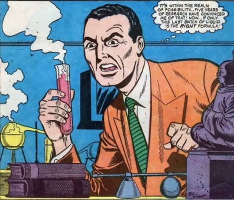 Uncanny Tales I#41/3, p1, pan1 (main image - Kirk Dunster, holding test tube of recreating fluid)