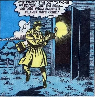 Uncanny Tales I#41/3, p4, pan7 (Kirk Dunster; Daily Globe editor [background])