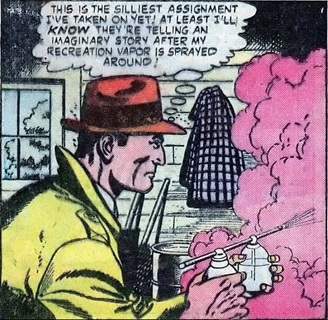 Uncanny Tales I#41/3, p1, pan3 (Kirk Dunster first uses recreating spray from atomizer)
