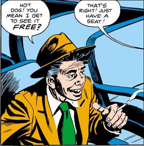 (Strange Tales I#9/3) - While walking along a city sidewalk, Freddie noticed a large crowd gathered outside a movie theater; the marquee advertised the world premiere of a new film--The Man from Mars (more terrifying than Frankenstein). As a self-described "sucker for spooky movies," Freddie made up his mind that he wouldn't miss the new film, if he could only raise the money to pay for admission.