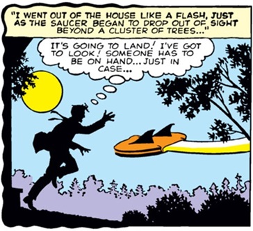 Tales to Astonish I#2/5, p2, pan3 (in flashback, flying saucer lands near Professor Webb's home)