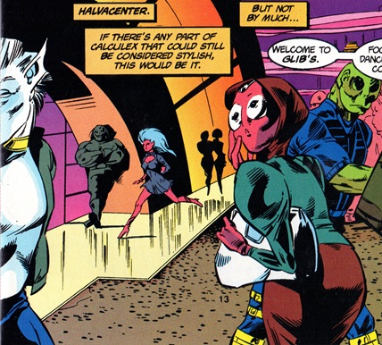 Major Resources: Various forms of dance (including (or perhaps only including) exotic dancing), drink, food, holo-rooms, various intoxicants (and pop-stims), and coupling (presumably prostitutes) Defense: Glib Arkanian; and his Badoon Cellular Incinerator (and perhaps other weapons); First Appearance: Captain Marvel III#1 (December, 1995) |