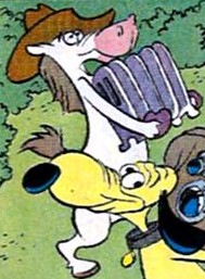 Hoagy Bear is based on the Hanna-Barbera cartoon character Yogi Bear, who lives in Jellystone National Park with his li'l sidekick bear Boo-Boo. Several other Hanna-Barbera cartoon cast provide the template for this story's characters; the white horse Quick Draw McGraw becomes Rawhide while Snagglepuss becomes Haggletooth. Unnamed duplicates for the duo Augie Doggie and Doggie Daddy plus Scooby Doo and others can also be seen. I'm not sure why the writer went with HB copies, but this issue copied a lot of other non-Marvel characters for parody/humor value (in this case, also insightful, although it was those in Jamstone National Park that ended up cleaning up other people's rubbish).