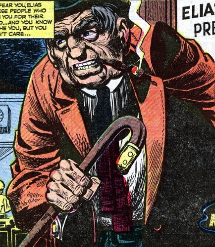 (Marvel Tales I#112/4 (fb) - BTS) - Elias grew up to open his own manufacturing business with his associate Charlie Slade. One Christmas when Elias was 45, Elias cheated Slade out of his portion of the business and informed Slade that they weren't partners anymore. Slade died of a broken heart. From then on, Elias was the president of his business and he invested Slade's money to earn millions of dollars. He eventually bought the entire building where he'd originally rented his offices and became a director in fifteen companies.