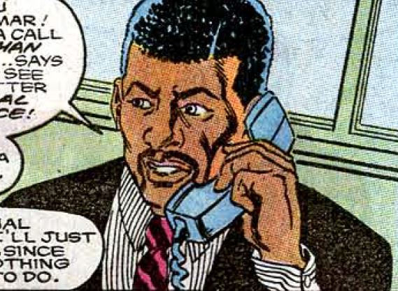 (Captain America I#373/2) - During the period where his brother Lemar was operating as a solo adventurer in his identity as Battlestar, Leon managed Lemar's affairs from an office in Chicago. Leon received a telephone call from Lemar's former manager Ethan Thurm in Los Angeles. When Lemar checked in with Leon, Leon informed him of Ethan's message, which claimed he needed to see Battlestar on "a matter of national importance." Lemar investigated Ethan's call.