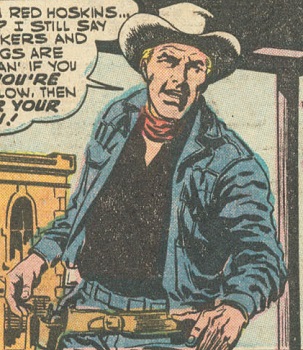 Powers/Abilities: Red Hoskins wore two six-guns on his gunbelt and he was an excellent shot. He was also a good horse rider.