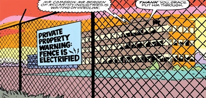 sort of corporate sabotage on the level of a supervillain, prompting