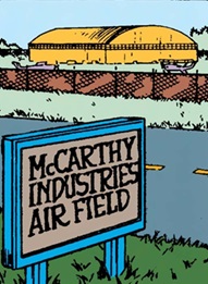 McCarthy Industries was a dummy corporation founded by the Pantheon for use in their purchase of machine parts from Hunter Technologies. Utilizing McCarthy Industries, the Pantheon arranged for a delivery of machine parts and the Pantheon's Hector arrived to supervise the delivery, only to be attacked by Lazarus, drawing the attention of the Hulk to Hunter Technologies. Determined to get to the bottom of the recent attacks by Lazarus, the Hulk arranged a new delivery from Hunter Technologies to McCarthy Industries' private airfield in an attempt to lure Lazarus out of hiding.