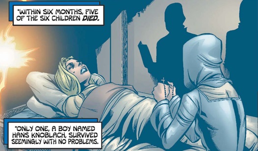 scientist could examine the meteor. Within six months, 5 of those 6 children died. Only one, a boy named Hans Knoblach (who had come from a wealthy German merchant family), survived, seemingly with no problems. (Cable I#94 (fb) - BTS) - At least two of Hans' children had superhuman powers. |