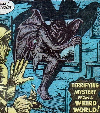 gray-skinned with fanged visage, burly upper bodies and taloned nails
