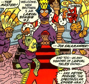 (secretly the heroic Spider-Ham) from the cult of the Larval Zombies