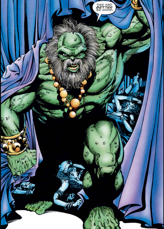 Ever since their first encounter, the Hulk lived in fear of some day becoming the Maestro. At many critical moments during the latter part of Peter David's run, the Hulk would think of the Maestro and his predictions, particularly when given occasion to confront his own darker or more violent nature. Accordingly, the Maestro frequently appears in the form of a nightmare or hallucination. While I did not count these nightmares and hallucinations as appearances for purposes of this profile, the Hulk imagines the Maestro in this fashion in Incredible Hulk II#417, Incredible Hulk II#421, and Incredible Hulk II#460. Likewise, when the Hulk temporarily went a little insane after getting grenade shrapnel lodged in his brain, he declared himself the Maestro in Incredible Hulk II#439, although this lasted only an issue or two.