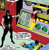 Powers/Abilities: Marley is an excellent hand-to-hand combatant and marksman. He had access to a variety of weapons, including an oak cane (when dressed for the 19th century), an automatic rifle (when dressed for the present) and a laser pistol plus a wrist-mounted laser weapon (when dressed for the future). When dressed as Santa Claus, he used a bell as a club. His greatest weapon was his atomic bomb, which he controlled using his EMIAD 230 Computer. Marley was also a master of disguise who adopted a variety of costumes, dialects and make-up.