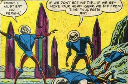 Now cut off from their supply-line on Mars because their rocket-ships could never fly the great distance, the remaining Martians faced defeat as starvation struck, and they would soon asphyxiate without their native world's atmosphere. Rather than perish on a foreign planet, the entire Martian fleet committed mass suicide by rocketing off into deep space to die.