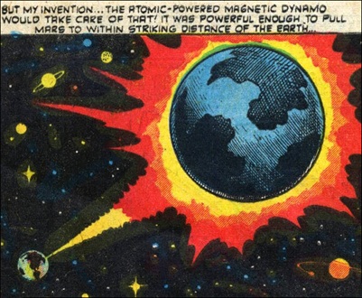 Journey into Unknown Worlds I#7/1, p3, pan2 (beam from Atomic-Powered Magnetic Dynamo pulls Mars closer to Earth)